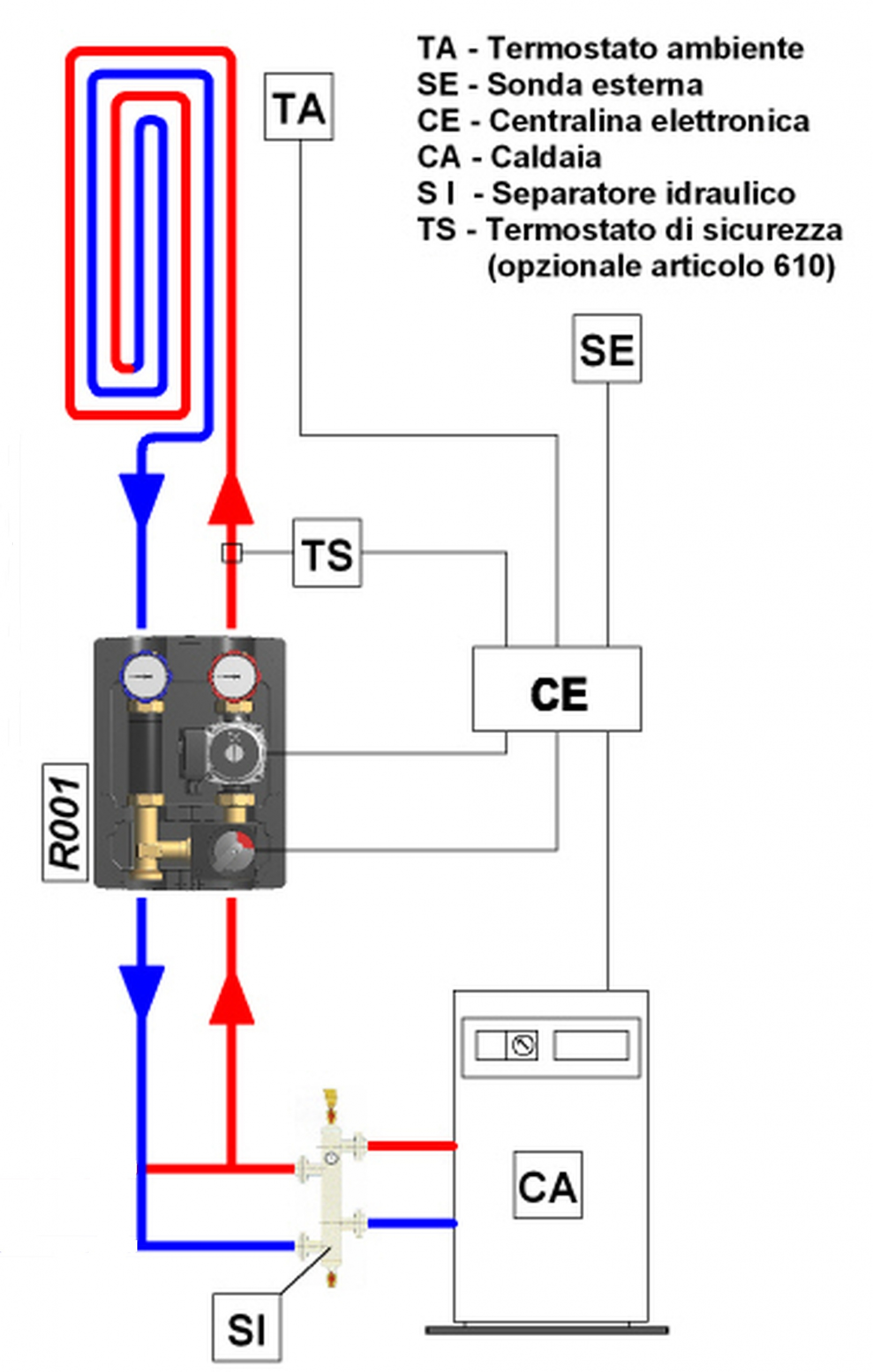 - Servocomando: Assicura un controllo preciso e affidabile della temperatura di mandata.