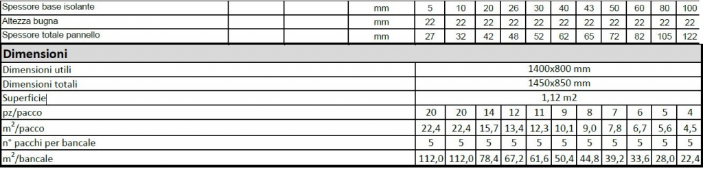✔Spessore base isolante mm. 5/10/20/26/30/40/43/50/60/80/100