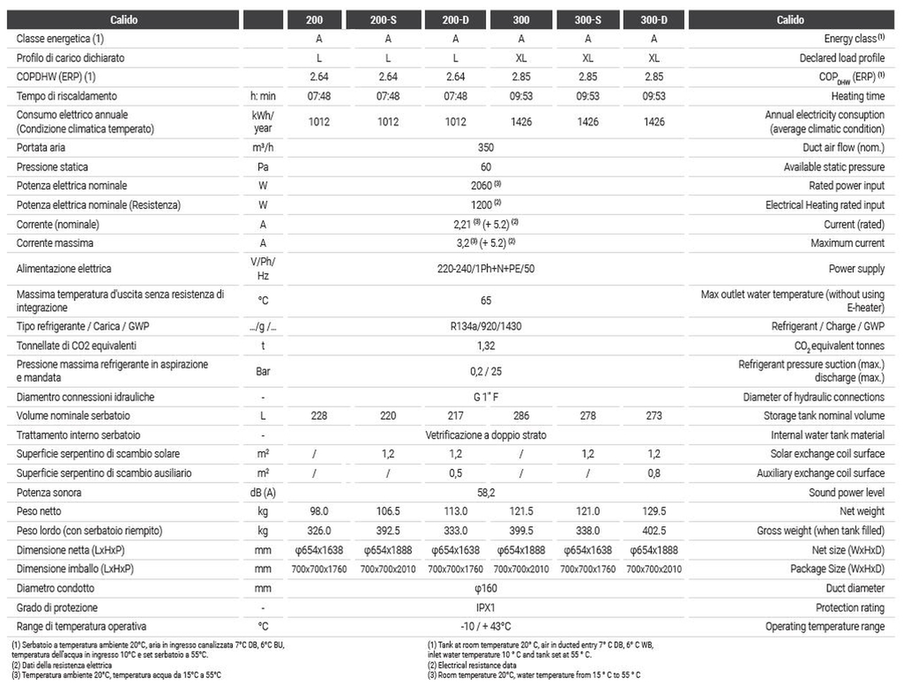 Il consumo annuo medio per il modello in vendita ovvero il Calido 300-D da 300 litri è di circa 1426 kWh per installazioni in clima temperato, garantendo un risparmio significativo rispetto ai sistemi tradizionali.